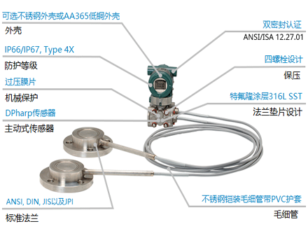 The EJA118E diaphragm sealed differential pressure transmitter adopts single crystal silicon resonant sensor technology, which is suitable for measuring the flow rate, liquid level, density, and pressure of high and low temperature, high vacuum, high viscosity, and easily crystallized media.