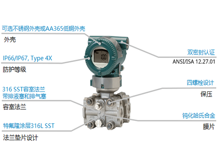 The EJA120E high-performance micro differential pressure transmitter adopts monocrystalline silicon resonant sensor technology, which is suitable for measuring the flow rate, liquid level, density, and pressure of liquids, gases, or vapors.